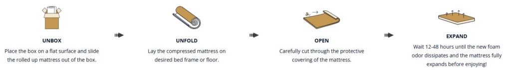 We’ve made the unboxing experience fun! It gets delivered to you in a vacuum compressed form. You just need to cut the sides of plastic with a scissor and see the magic of expansion. Once you’re done, your Rhythm mattress will be 90% of the way to its full shape and can be used immediately. For the best experience, though, we recommend waiting an additional 24-48 hours for the mattress to fully expand